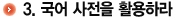 | »õ·Î¿î ´Ü¿øÀ» °øºÎÇÒ ¶§, ±× ´Ü¿ø¿¡ »õ·Î ³ª¿À´Â ³¹¸»À» ±¹¾î »çÀüÀ» ÅëÇØ Á¤È®ÇÑ ¶æ°ú ¿ë¹ýÀ» È®ÀÎÇÏ°í ±×°ÍÀ» ¾Ï±â±î±â ÇÏ¿©¾ß ÇÑ´Ù. ƯÈ÷ ¿ì¸® ¸»Àº 70% ÀÌ»óÀÌ ÇÑÀÚ¾îÀ̹ǷΠ±¹¾î »çÀüÀ» ÅëÇÏ¿© ³¹¸»À» ÇнÀÇÒ ¶§ ÇÑÀھ °øºÎÇÏ´Â ¼ö°í ¶ÇÇÑ ¾Æ²¸¼´Â ¾È µÈ´Ù. |