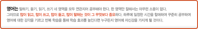 ¾Æ¹«¸® ¾Æ´Â ´Ü¾î°¡ ¸¹°í ¹®¹ýÀ» Àß ¾È´Ù ÇÏ´õ¶óµµ µé¸®Áö ¾Ê´Â´Ù¸é ¿µ¾î¸¦ Àß ÇÑ´Ù°í ÇÒ ¼ö ¾ø´Ù. µéÀ» ¼ö ÀÖ¾î¾ß ´õ Àß ¸»ÇÒ ¼ö ÀÖ°í ¸»ÇÒ ¼ö À־ ´õ Àß ¾²°Å³ª ÀÐÀ» ¼ö ÀÖ´Â °ÍÀÌ´Ù. µè´Â °Í »Ó¸¸ ¾Æ´Ï¶ó µéÀº °ÍÀ» ¼Ò¸®·Î ¸»ÇÏ´Â °Í¸¸Å ¿µ¾î¸¦ Àß ÇÒ ¼ö ÀÖ°Ô ÇÏ´Â ÁÁÀº ¹æ¹ýÀº ¾ø´Ù. ²ÙÁØÈ÷ ¿µ¾î¸¦ µè°í ¸»ÇÔÀ¸·Î½á ÀÚ½ÅÀÇ ¹ßÀ½¿¡ ´ëÇØ ÀڽۨÀÌ »ý±â°í ¿µ¾î¿¡ Èï¹Ì¸¦ °¡Áú ¼ö ÀÖÀ» °ÍÀÌ´Ù.