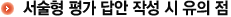 ¼¼úÇü Æò°¡´Â ¹®Á¦¿¡¼ ÀÌ¹Ì '¿¹½ÃÇ϶ó, ºñ±³Ç϶ó, ºÐ·ùÇ϶ó.' µîÀ¸·Î ´ä¾ÈÀ» ÀÛ¼ºÇÏ´Â ±âÁØÀ» Á¦½ÃÇϹǷΠ¹Ýµå½Ã ±× ±âÁØ¿¡ ¸ÂÃß¾î ´ä¾ÈÀ» ÀÛ¼ºÇØ¾ß ÇÕ´Ï´Ù. ±×·¸Áö ¾ÊÀº °æ¿ì¿¡´Â °¨Á¡ ¿äÀÎÀÌ µÉ ¼ö ÀÖÀ¸¹Ç·Î ±× ¿ÜÀÇ ´Ù¸¥ Á¶°Ç( ¿¹¸¦ µé¾î, ´ä¾È ±æÀÌÀÇ Á¦ÇÑ µî) ¿¡µµ À¯ÀÇÇÏ¿© Á¶°Ç¿¡ ¸ÂÃß¾î ´ä¾ÈÀ» ÀÛ¼ºÇØ¾ß ÇÕ´Ï´Ù.