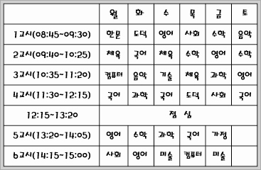 ´ÙÀ½ Ç¥´Â ¼öÁö(Suji)ÀÇ ½Ã°£Ç¥ÀÌ´Ù. Ç¥¸¦ º¸°í ´ÙÀ½ Áú¹®¿¡ ¾Ë¸ÂÀº ´äÀ» ¿ÏÀüÇÑ ¹®ÀåÀ¸·Î ¾²½Ã¿À. [10Á¡]